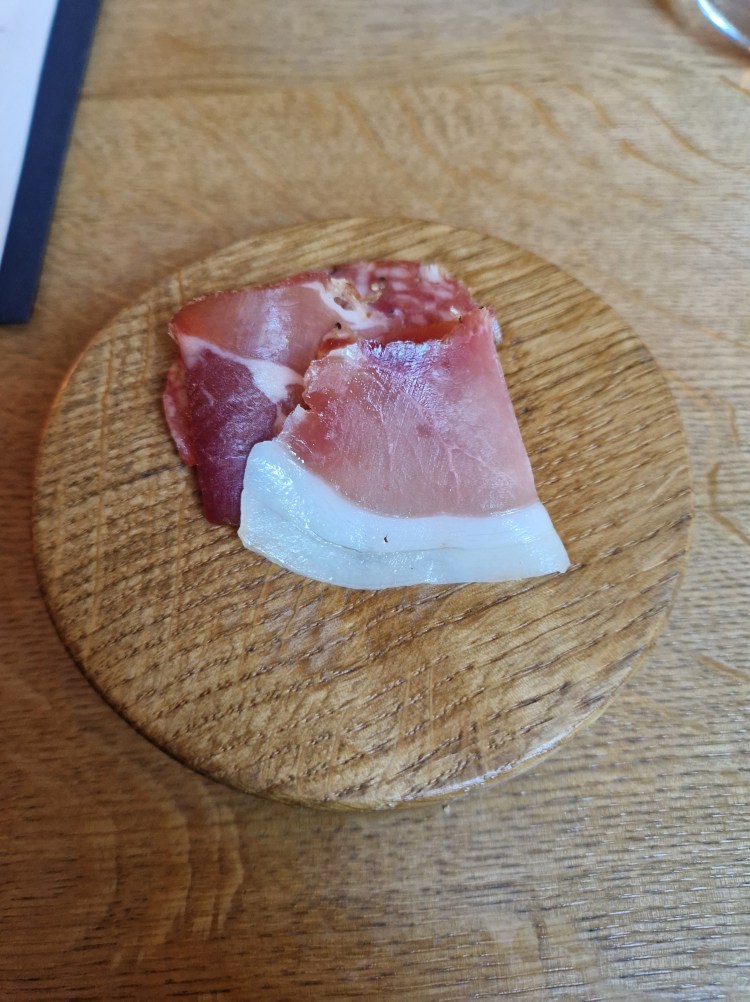 The first course arrived, Oldstead charcuterie. Three different meats from the farm. A smoky smell emitting from the meat but a subtly smoky flavour. A brilliant start to the night. Who doesn’t love charcuterie (unless you are vegetarian), especially when the meat has been raised on the farm. I just hope they don’t name the pigs. I don’t want to find out later that I’ve eaten Polly.