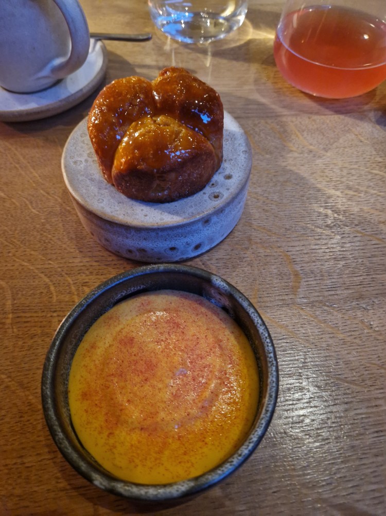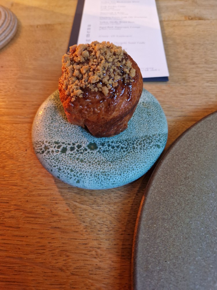 Moving onto the final dessert course (when it arrived), root vegetable bun and cream. An appealing glazed bun with an orange looking cream. I broke off a piece of the bun, dipped it in the cream, popped it in my mouth and…felt sick. This dessert was very sickly and the most disappointing dish of the night by a mile. It was too sweet and I didn’t like the flavour at all. I ended up eating a third of the bun before pushing it to one side and giving up. I don’t want veg for my desserts, I want fruit, I want chocolate. At least give me chocolate for a dessert if you’re going to put savoury elements in like you do at The Black Swan. A hot hand towel was placed on the table when this course arrived. When I came to use it, it was stone cold. Perhaps bring this once your diners have finished this course and not before.