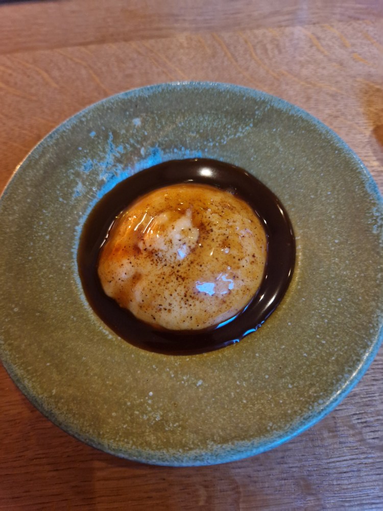 Before the next course was served, the utensil was placed on the table. It was a small silver spade. I wish I had taken a photo of it because unless you’ve been, you wouldn’t believe me. There were two parts to this dish. First the crab custard with caviar and a crab brioche toast. Exceptional. One of the best dishes I have ever tasted. The umami taste from the the custard and the brioche, the crab meat on the crab toast was perfect. A slight heat from the fermented chilli but still perfect. After the crab, I had high expectations for the rest of the dishes I had ahead of me.