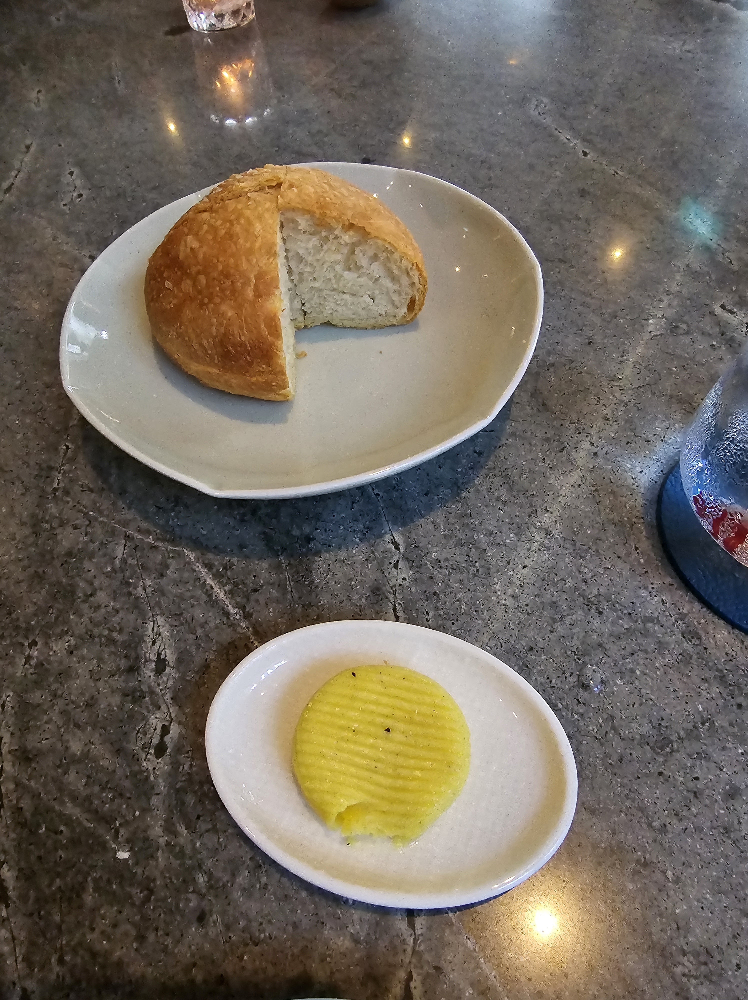 Soon the canapes arrived and we were off. 4 canapes, the first- Caviar and Turnip. I expected this to be rather salty but it wasn’t. It was actually rather enjoyable, coupled with the small piece of crunchy Turnip and chopped Chives. Second was Lobster, bright red started at you atop a creamy sauce. Basil canape was next, the beautiful aroma from the Basil and the taste… *chef’s kiss*. My favourite canapé of them all was a cracker with various ingredients, topped with grated Truffle. Bonus points for me not getting Truffle stuck to my lips (sometimes you have to celebrate the small wins). Bread swiftly followed and I was advised to go easy on the Bread as there would be a second Bread course. I immediately dived into the Bread, which was extremely hot, almost too hot to handle. I had to wait a few moments for it to cool down before I could begin to devour it.