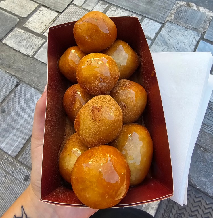 Feeling slightly better after a nap, I headed in search of food. I found a Pizza place 4 minutes away from the hostel. The Pizza wasn’t great, it tasted like it had been sat there for hours. I ate half and threw the rest away. I’d try get better food the next day. Did I find better food the next day? Sort of… I had Loukoumades, with Honey and Cinnamon. The first from my Greek food bucket list. They were rather crispy, I expected them to by softer. I definitely needed to try a few different Loukoumades shops to see where the best ones were.