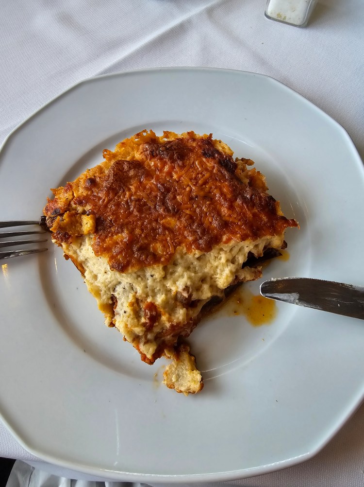 Whilst in Paros, we had some free time one afternoon, a large group of us headed in Paros town, 8 of us found a restaurant on the main street with views of the Ocean. The rest dined elsewhere. Bread was placed on the table, we ordered our food and drink and once we had eaten our mains, we were offered desserts. We all declined. I headed inside to ask for the bill before heading to the bathroom. I noticed the waiter who had served us, placing desserts on a tray. One of every dessert they offered. I quickly sent a text to the group. When I arrived back at the table, I noticed the tray on the table next to us, all the desserts lay untouched. I think they thought they could entice us with dessert if they showed us what they had to offer but it didn’t really work. Looking at the bill they brought, the Bread they placed on the table when we first sat down… not free. They tried to charge us 2 Euros per person for the bread that I don’t think anyone touched. We argued about the bill but in the end, one of the group members paid for the bread even though we told her not to. Overall, the food and service was a little underwhelming. I ordered Steak and was not asked how I wanted it cooking (Medium Rare, is there really any other way?) so the Steak arrived a bit well done and needed more sauce.