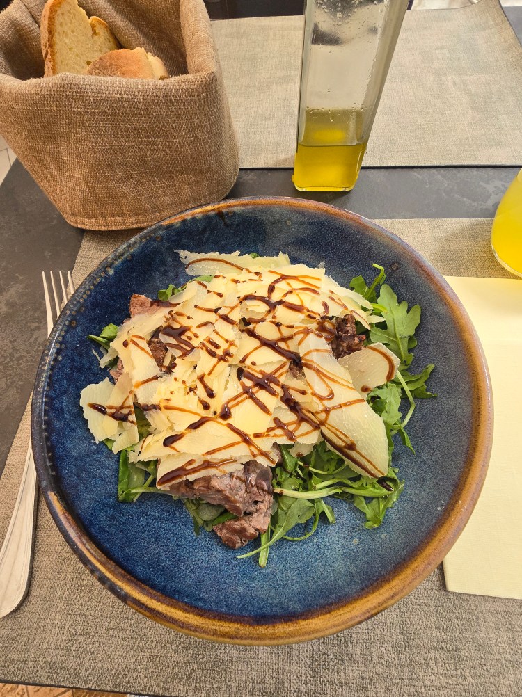 The rest of my week in Rome went by in a haze of Pizza, Pasta, Gelato and Italian architecture. I caught the train up to Florence, checked into my hotel, and set off on my mission to find food. I didn’t have to wander far before I found what I was looking for. Ristorante Pizzeria da Nasone offered Tuscan food which was exactly what I needed. I was the only one in the Restaurant when I arrived at 5pm, perusing the menu, I settled on a Steak salad. It was the best Steak Salad I have ever had any only consisted of 4 ingredients; Steak, Rocket, Parmesan and Balsamic. I visited the restaurant many times during my week in Florence and always ordered the Steak Salad.
