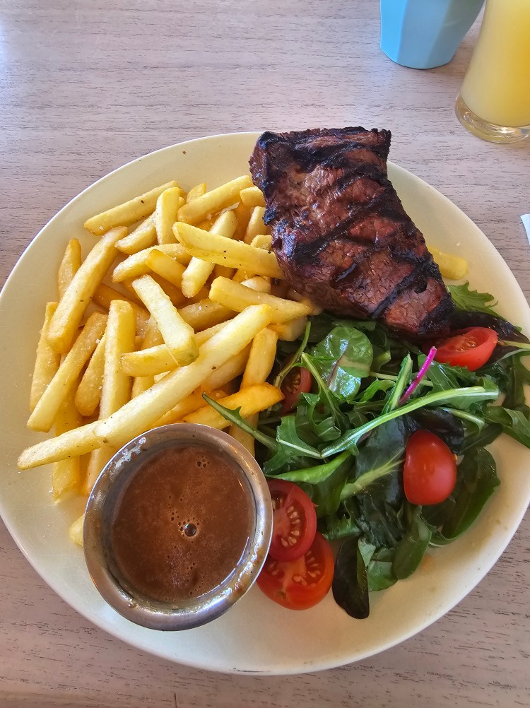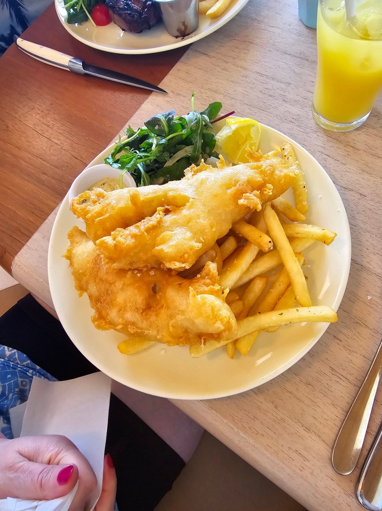 The following day, jetlagged, we headed to Palm Beach for a day trip. Palm Beach is the setting for the outdoor scenes in Home and Away, it was very windy but we took refuge at The Barrenjoey Boatshed. Home and Away fans will recognise this as it is used for exterior Diner shots. Having undergone an extensive renovation, ‘The Joey’ now boasts a modern, airy, dining space which gives laid back, beach vibes. Dad and I both opted for Steak, mine Medium Rare, Dad’s Medium to Well Done. Mum opted for Fish and Chips. We had to order and pay via the QR code on the table. The waiting staff brought the food 20 minutes later. Dad poured his Peppercorn sauce over his Steak and began to dig in. As I sliced into the Steak, I looked at mine and compared it to Dad’s. Why did mine look overcooked? I sliced into the Steak again, then realised, they had given me the Medium to Well Done Steak which should’ve been Dads. Dad offered to swap but I declined, I prefer to dip the Steak into the Sauce, not smother it. Mum’s Fish and Chips were huge, she has a small appetite anyway and I always joke she should order from the Kids menu, but on this occasion she really should’ve ordered from the Kids menu.